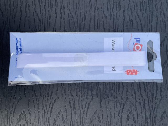 Den er 1 cm bred og nem at skrive på. Der er lim på den ene side så du nemt kan stryge det fast.