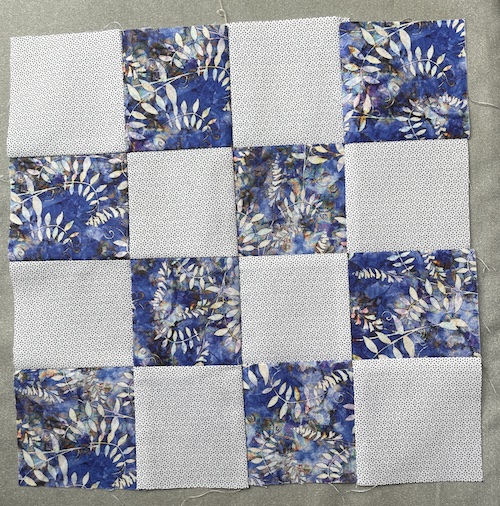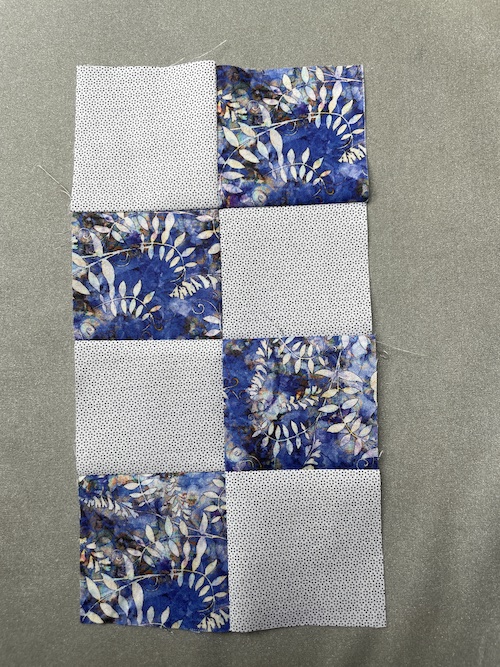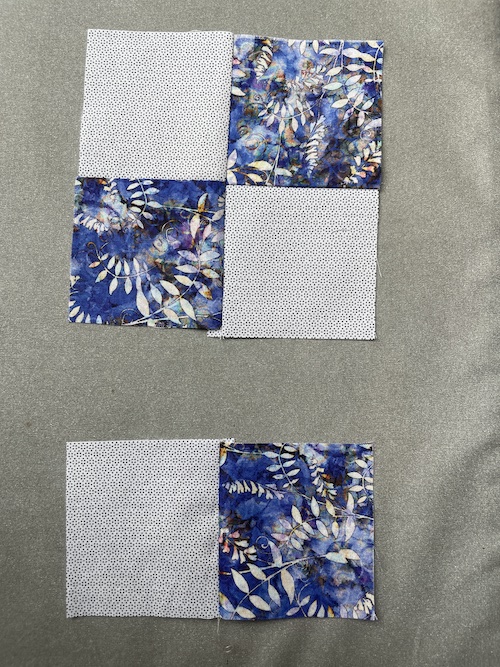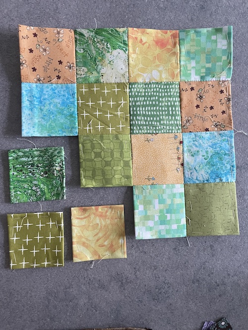 Sy nu disse 2 x 16 firkanter sammen som her på billede, men en neutral sytråd med små kastesting.