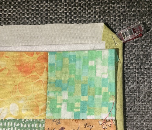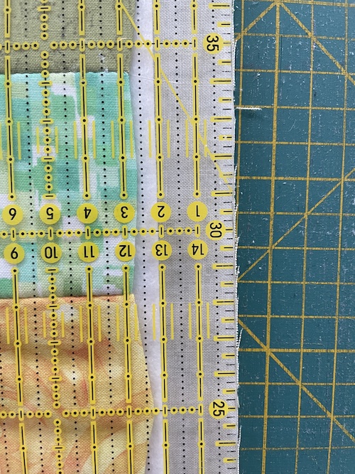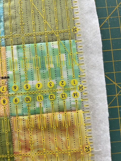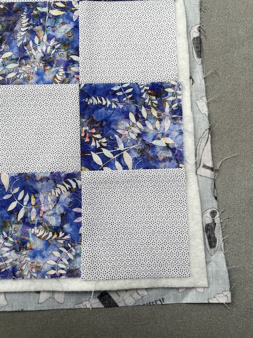 Ri evt hele vejen rundt, så du har styr på alle tre dele inden du quilter det hele sammen.
