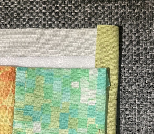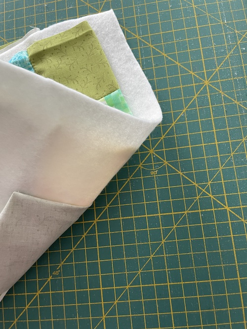 Nu skal bagside stoffet bukkes rundt om vattet, inden forsiden lægges ovenpå.