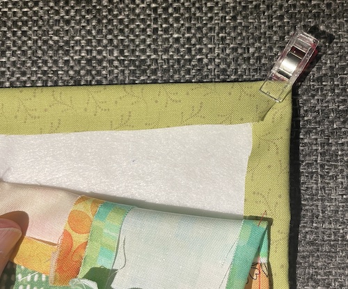 Ri dem sammen, eller sæt sikkerhed nåle i, for at holde de 3 lag sammen når du skal til at quilte.