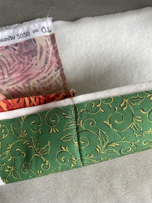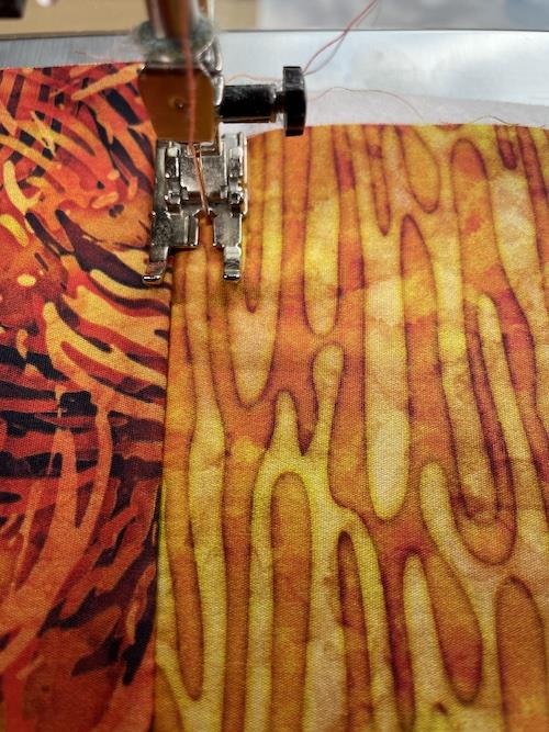 Derefter de to første stykker stof ret mod ret for "forsiden" af mit mellemfoer,