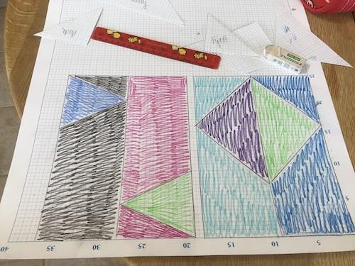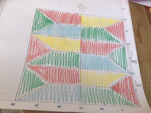I kan se målene på billedet og tælle jer frem på et tilsvarende stykke patchwork karton.....