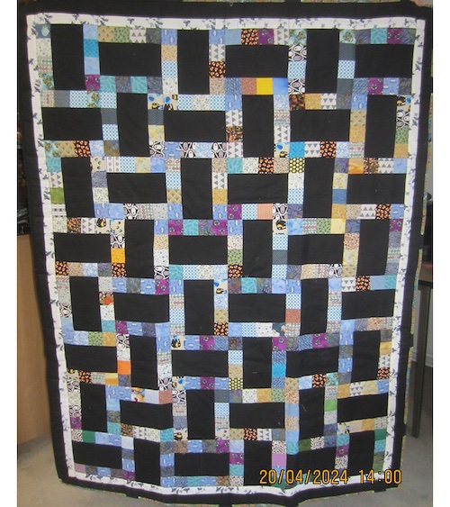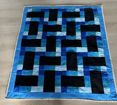 Til sidst er der syet en 6 cm sort kant hele vejen rundt om tæppet.
