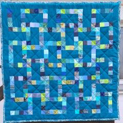 Har quiltet diagonalt med en meleret quiltetråd diagonalt i hele tæppet.