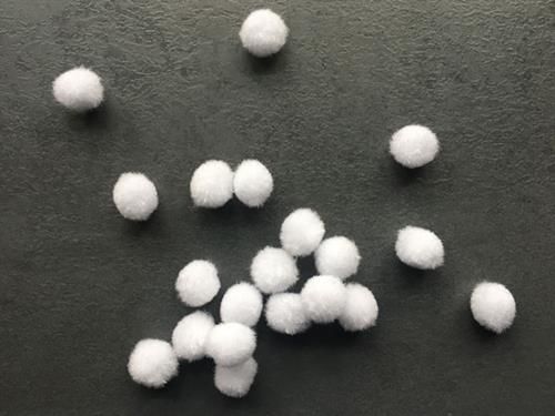 20 hvide pompommer 15 mm er de hvide pomponer du sætter på små nissehuer evt syet som kræmmerhus ( BB13 mønster)
