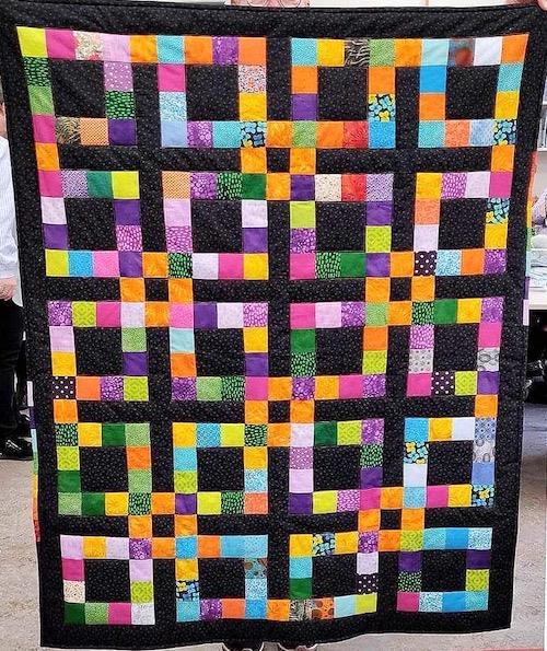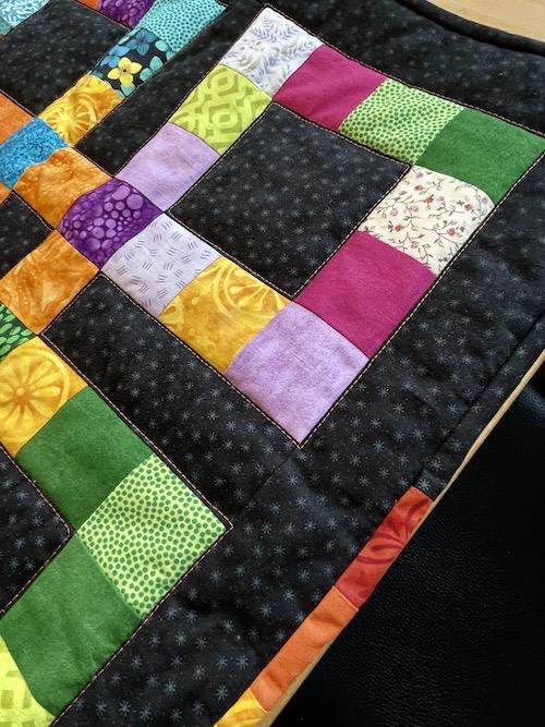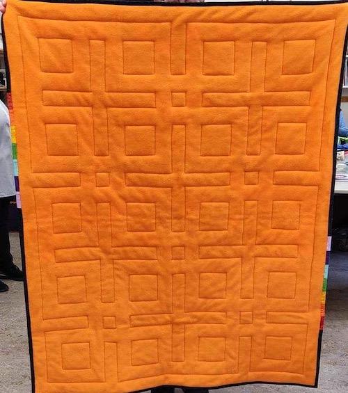Så blev mit tæppe også færdigt 👍 det blev quiltet i de sorte felter med orange tråd.
