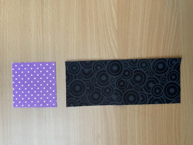 På de 3 af dem syr du en firkanter på af kontrast farven som måler 6 x 6 cm ( ja her er det den lilla)