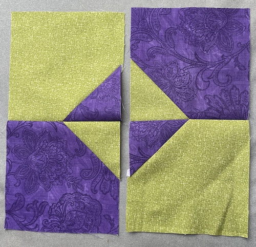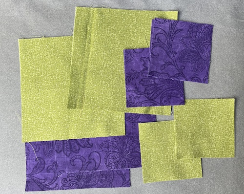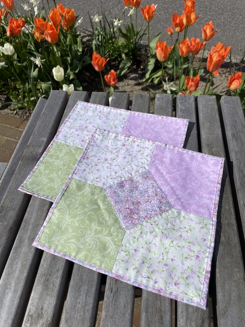 hver af de to stoffer 4 x store firkanter på hver 12,5 x 12,5 cm.