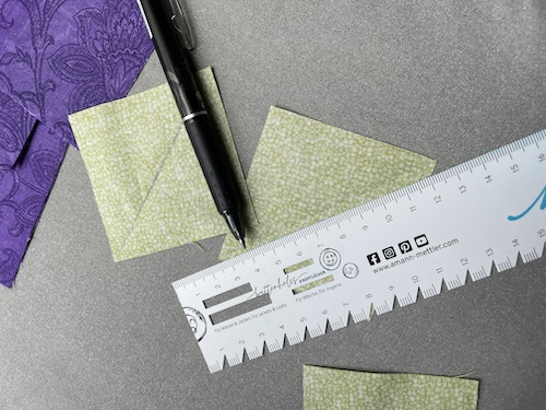 Læg dem på de store firkanter som her på billede og sy i stregen.