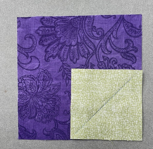 Skær det overskydende stof væk og pres den lille trekant ud så du får 1 stor firkant.