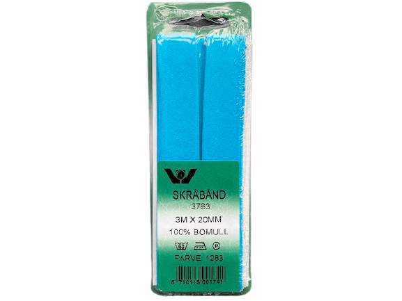 3 meter skråbånd/kantebånd - Turkis. Denne meget flotte Turkis bomulds kante bånd / skråbånd er perfekt til afslutninger på dækkeserveitter, duge, grydelapper halsudskæringer. Da dette kante bånd / skrå bånd er taget dioganalt, er det jo super nemt at burge i rundnninger og andre runde former.