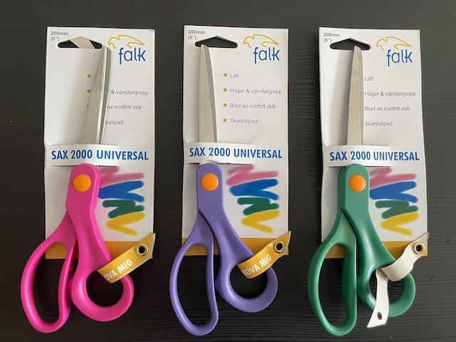 Super tilbud - 3 universal sakse på hver 20 cm - en med grøn, en pink og en med lilla håndtag.