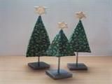 Det er et patchwork mønster, som indeholder papskabeloner til 3 stk juletræer.  Der følger ikke metalfødder med.