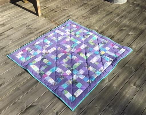 Det har jeg haft meget fornøjelse af at sy og at finde de rester der passede sammen til tæppet.