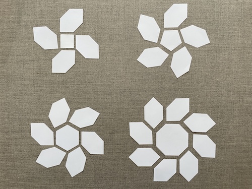 Forside » Gratis DIY og Inspiration » Nybegynder patchwork » Håndsyet blomster - nemme at sy. » 4-5-6-8 kanter med masser af muligheder 4-5-6-8 kanter – så mange muligheder.