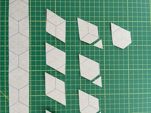 Skære dem først i "romber" og klik så derefter en lille modsatte trekant af på alle dine papskabeloner