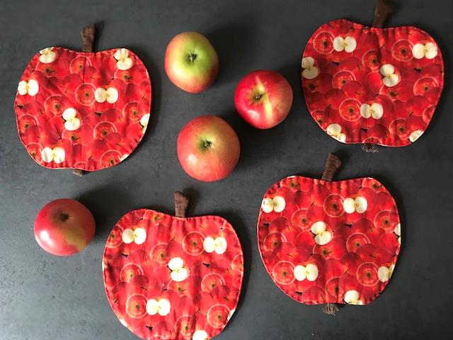 Dette sykit er til 4 æble krus brikker - de er syet på maskine med stilk.