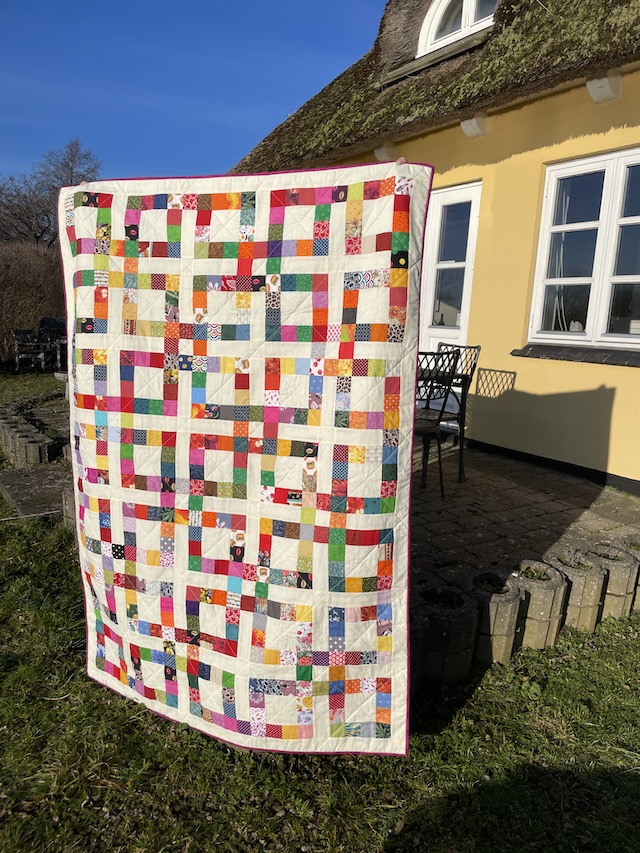 Ja nu har du nok snart knækket koden, til dette sjove restetæppe og den meget flotte flettet virkning det har/får.