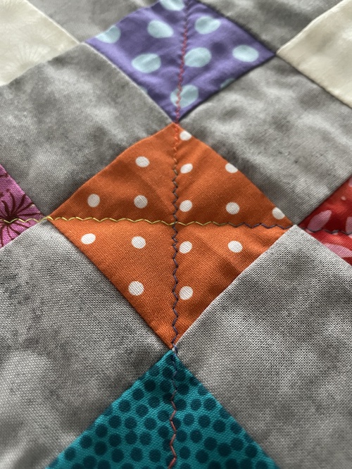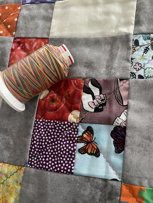 I dette tæppe har lige afprøvet denne meleret sytråd, som jeg har både i over og undertråden.