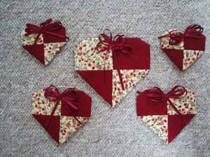 Dette er et Pedari patchwork mønster, som indeholder papskabeloner som lige er klar til at klippe ud til 5 Hjerter i 3 fors. størrelser - Mønster 159