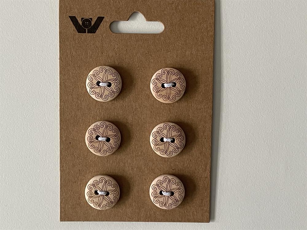 Disse meget søde træknapper med 2 huller måler 15 mm i diameter.