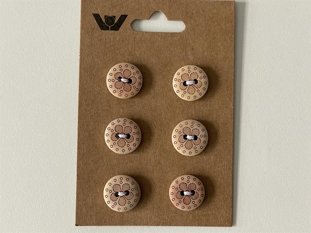 Disse meget søde træknapper med 2 huller måler 15 mm i diameter.