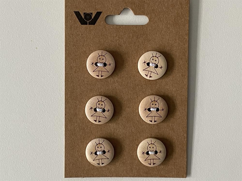 6 stk træ knapper med 2 huller - Pige