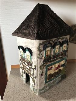 Hej Her mit bud på et hus, lavet for længe siden og skulle være låg på en rund æske.. Mvh Kirsten