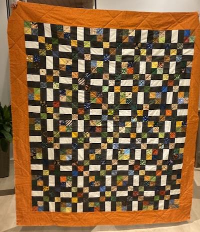Beskedtekst Nu er jeg så færdig med tæppet til resteræs, det har været en  fornøjelse at være med, vil nu sy et til i samme mønster. Birgit