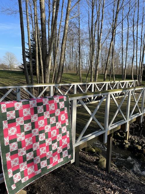 Forside » Gratis DIY og Inspiration » Patchworktæpper med danske bynavne 🇩🇰 » Restetæpper opdelt i de figure de er syet i » Restetæpper syet af 2 figurer » Aalborg tæppet et tæppe med kun 2 figurer Aalborg tæppet et tæppe med kun 2 figurer - gratis DIY.Dette meget enkelt restetæppe kalder jeg Aalborg tæppet. Tæppet består af kun to figur - en firkante og et rektangel. Det er da nemt. Tæppet måler ca 110 x 145 cm. Alle mål er skære mål og er syet med 0,75 cm sømrum. ![]() Dette billeder er taget ved Katvad Mølle en kold forårsdag BlokkenDette meget enkelt tæppe består af to rektangler, en pink og en grøn, på hver 6 x 10,5 cm.Her skal du bruge lige mange af hver. Og en firkant, stoffet med roser, på 10,5 x 10,5 cm ![]() Start med at sy de aflange rektanger sammen to go to, en af hver farve. ![]() ![]() Sådan fortsætter du hele restetæppet igennem. Du kan meget hurtig fornemme den effekt de kun 2 figurer har sammen. Jeg har tilsidst afsluttet med en "1/2" omgang da jeg synes jeg fik en større effekt af de "skjulte firkanter" i tæppet. Sy hele toppen færdig i ønsket størrelse. Samle tæppet med mellemfoer og bagside stoffet og quilt det hele sammen. Denne gang har jeg quiltet i sømmen "rundt om de store firkanter". ![]() Dette billeder er taget ved Katvad mølle en kold forårsdag. Rigtig god fornøjelse med at sy disse smukke restetæpper.Det er jo tænkt som et gratis mønster/vejledning - en gave til dig fra HANNES patchwork.Syr du dette slumretæppet er du meget velkommen til at fortælle hvor du har dit mønster fra. da det jo er min løn for at give dig dette gratis vejledning. ![]() ![]() Dette billede er taget ved Tange værket |