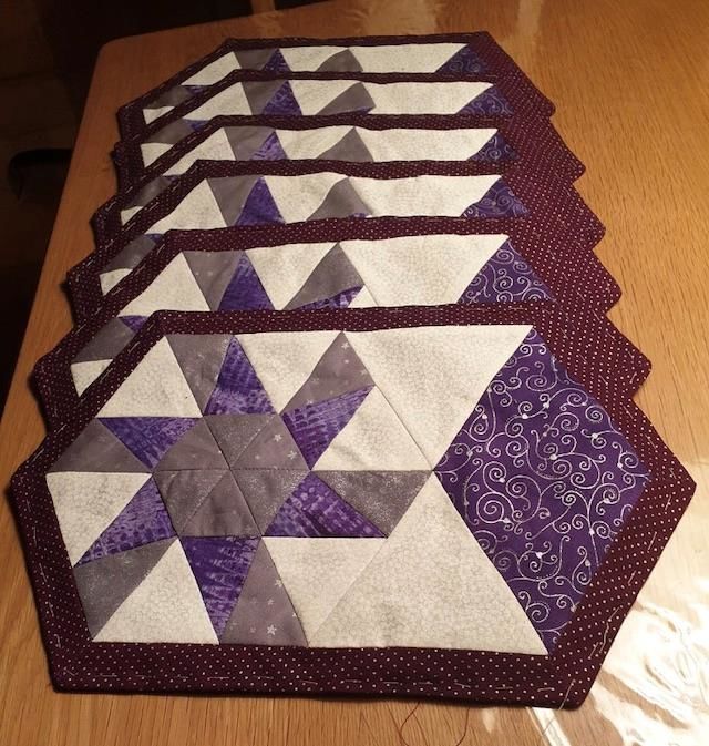Her er mit resultat det blev til dækkeservietter, hvor jeg fik anvendt flere stoffer med sølvprint.
