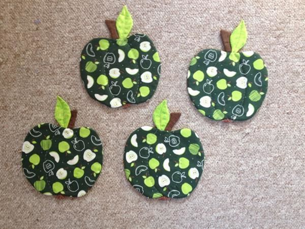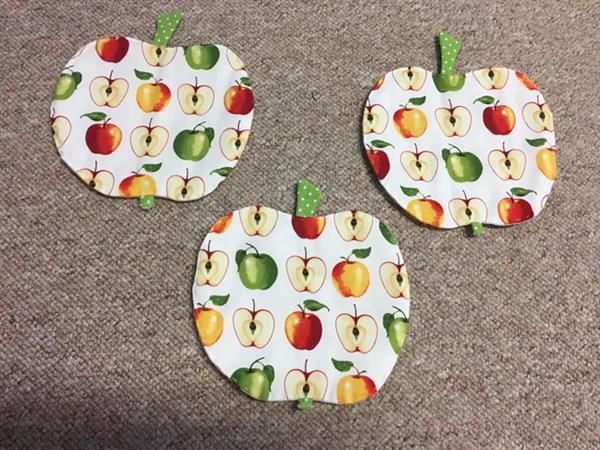 Æblerne er syet på maskine og kan syes over pap, som mønstret er trykt på.