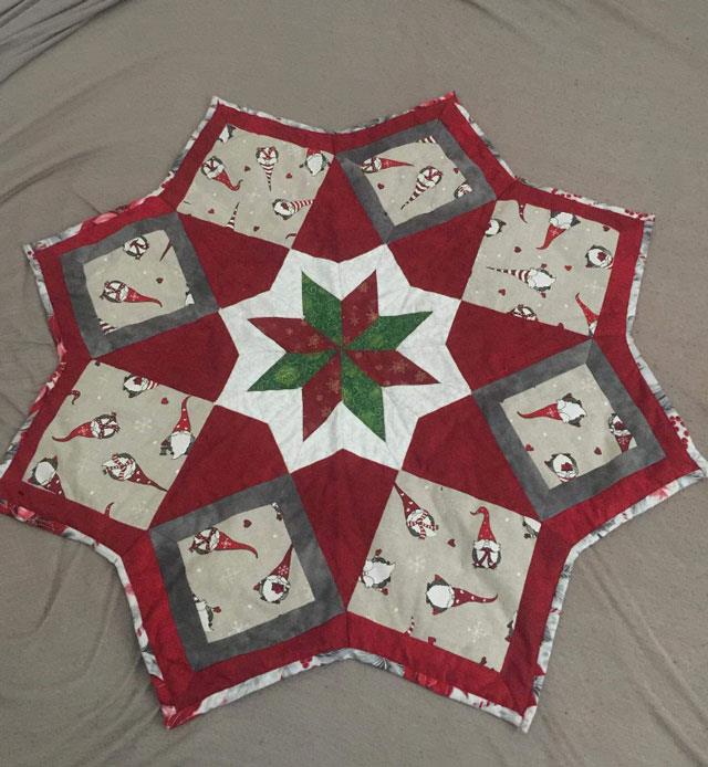 Bemærk dette er et mønster til et juletræstæppe/dug du selv skal sy i hånden og IKKE et færdigsyet juletræs tæppe/dug.