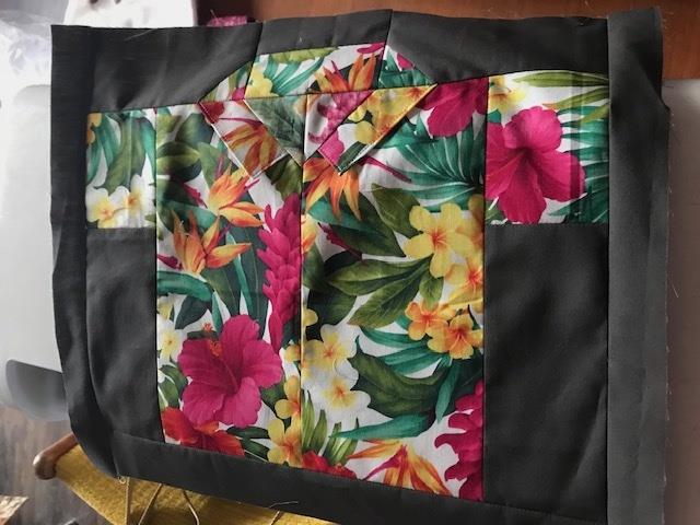 Tæppet er lavet med 20 Hawaii skjorter, skjorte stoffet er købt i sommer på Hawaii.