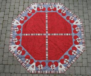 Mønster til Anne Juletrætæppe som er ottekantet måler 213 x 213 cm og har 16 hjerter