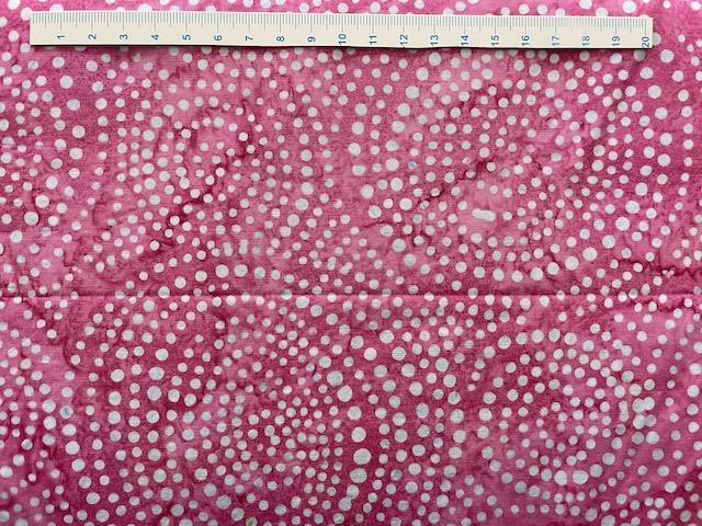 og har en flot pink meleret bundfarve med masser af prikker i hele og havle cirkler.
