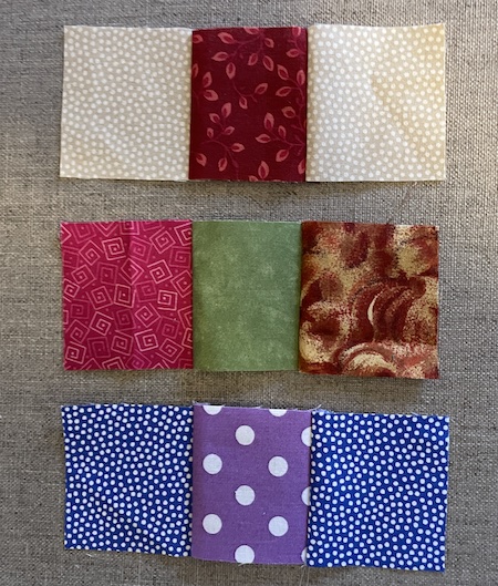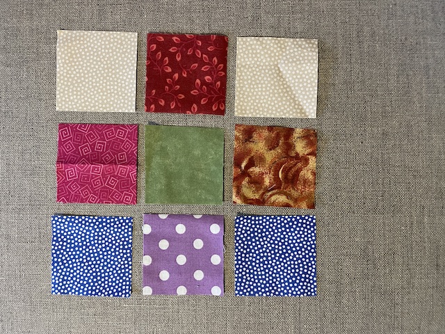 Hele restetæppe som her hedder Præstø, er syet af disse to enkelte blokke.