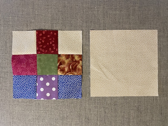 Den anden blok i bund stoffet måler 15 x 15 cm.
