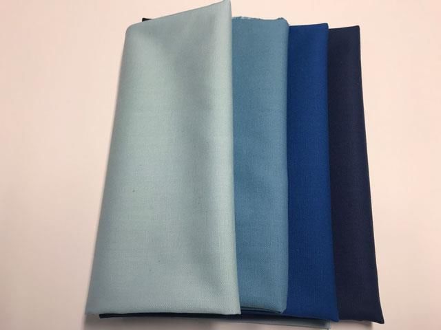 Blålige 4 stk Ensfarvet perlebomuld - er 4 flotte ensfarvet sanforiseret perle bomuld, som er et tæt vævet flot bomuld stof der passer sammen i farven. Alle stykker måler ca 40 x 75 cm.