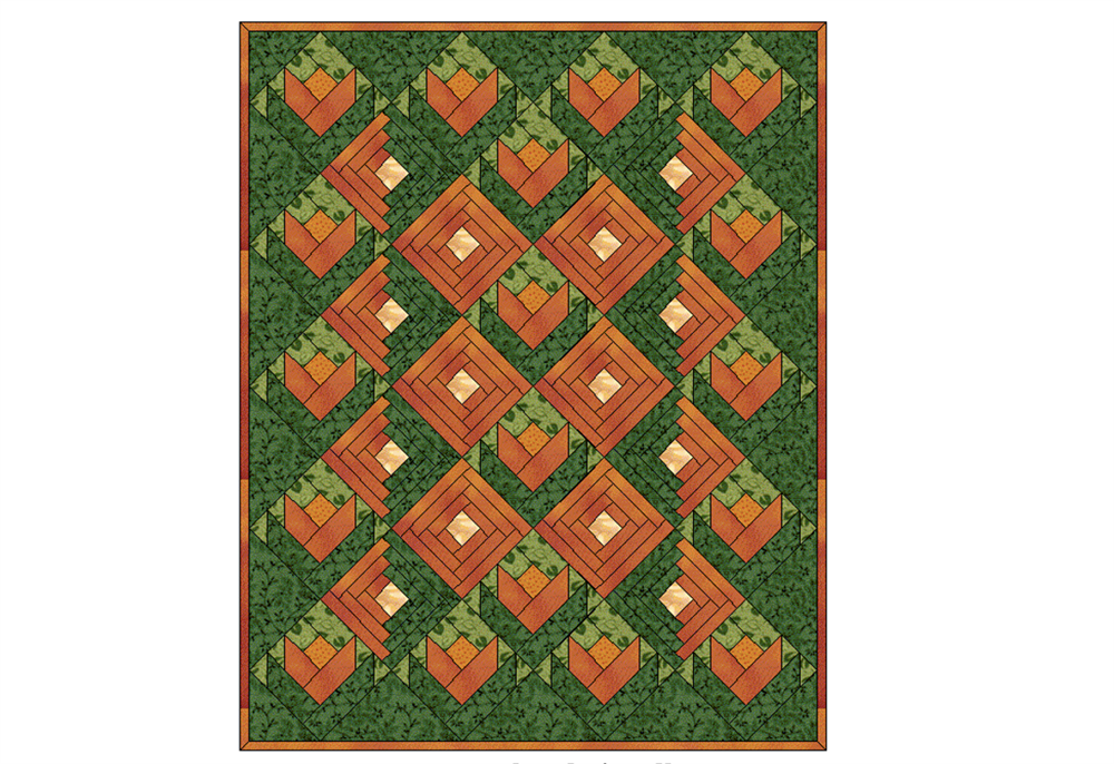 1,50 m mellemgrønt til blade, Log Cabin blokke + kanttrekanter