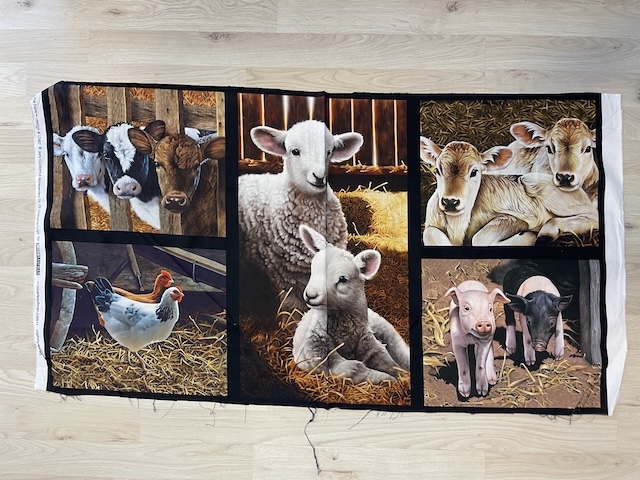 Bondegårds dyr 5 motiver på patchworkstof 1 rapport