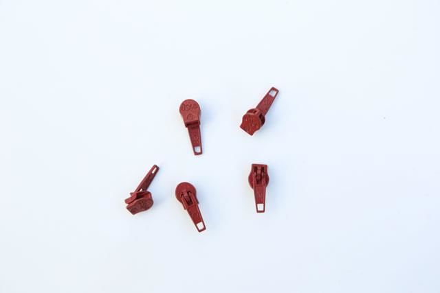 Disse Bordeaux/mørkerøde skyder/ glider passer til 4 mm lynlåse i metermål.