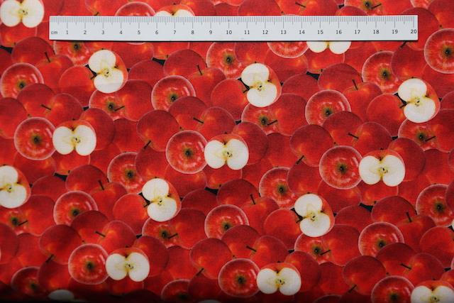 Er et flot bred bomuldsstof med masser af små hele og halve æbler.