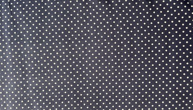 Er et flot Mørkeblå bred bomuldsstof med små hvide prikker i rækker.