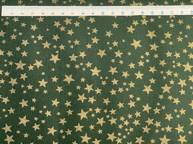 Er et flot grøn bred bomuldsstof med flotte guld stjerner i flere størrelser.