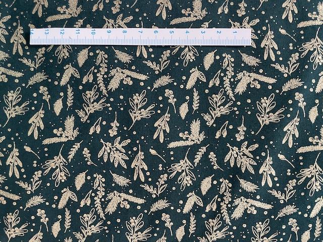 Brede Jule bomuldsstoffer - Grøn med grene og bær.