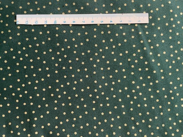 Brede Jule bomuldsstoffer - Grøn med guld prikker