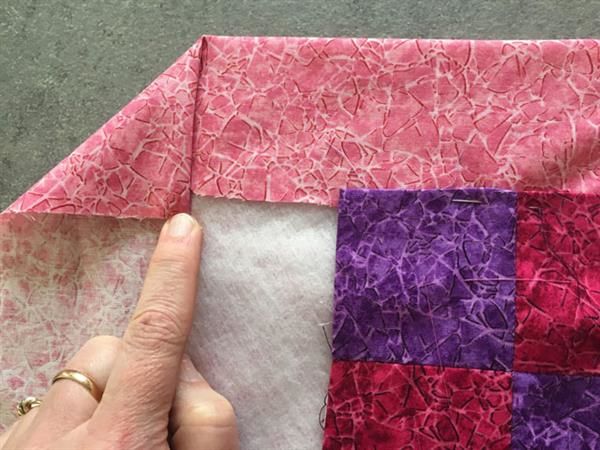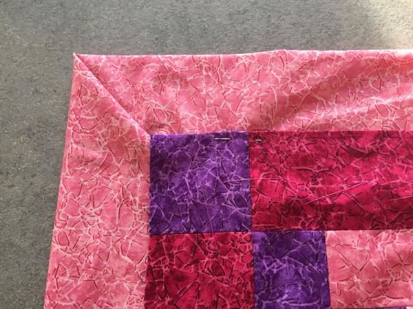 Forside » Gratis DIY og Inspiration » Gratis vejledninger - trin for trin. » Afslutninger - lukkekanter og skråbånd til patchwork » Brede kanter - lavet af bagsidestoffet - nemt og enkelt Brede kanter - lavet af bagside stoffet.Ja en nemt måde at lave en bred kant på dit patchwork tæppe, dækkeservietter og hvad du ellers lige drømmer om at lave en kant på. Denne måde er jo noget nemmer hvis du har håndsyet dit patchworktæppe, da du jo så har bukket sømrummet ind og kan ligge dit flotte patchworkstof under som en bred kant. Ja du bestemmer jo hvor bred din kant skal være. Her viser HANNES patchwork hvor nemt det er - trin for trin. Start med at sy din forside helt fædig, pres og pil pappet ud hvis du ahr syet det i hånden. Fordelen ved det er at du så har bukket sømrummet ind. Klip nu dit mellemfoer noget større end du skal bruge det. Skal din kant være eks 5 cm skal dit mellemfoer være 5 cm større end din top, når sømrummet er bukket ind. Dit bagside stof skal derfor være 5 cm + 5 cm + 1 cm = 11 cm større. Det vil sige 5 cm større end forsiden, derefter 5 cm større til kanten og tilsidst 1 cm til sømrum " under din top". ![]() Start midt på den ene langside med at bikke dit bagside stof om på forsiden og under forstykket/toppen. Quilt det nu fast. Du behøver ikke at "sy" det først, en quiltning kan nemt holde det. ![]() Når du kommer til et hjørne, bukkes den vinkelret ned på den "næste side". ![]() Buk nu det ind over "næste lang side" og forsæt med at quilte/sy den fast. ![]() Dette har mange fordele fordi du ikke skal lave lange papskabeloner til disse kanter hvis du har håndsyet dit tæppe. Du får heller ikke en "tung" og måske en "klumpret" kant. EksemplerHer kan du et nogle eksempler på sammen med at afslutte dit patchwork projkt p, dog er kanten ikke så bred.Men husk det er jo helt op til dig, hvor bred den skal være og hvilken udtryk du ønsker. Her kan du se hvilken effekt bagside stoffet kan give en flot effekt på forsiden. Alberte dækkeserviet med en sort bagside og en ca 1 cm kant uden om. Samt Berit vægtæppe, med en farvet kant. ![]() Rigtig god fornøjelse |