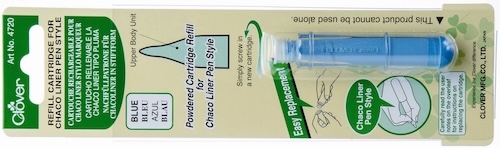 Chaco Liner Pen - Refill - fra Clover, er en pakke med en lille beholder med blå kridt i.